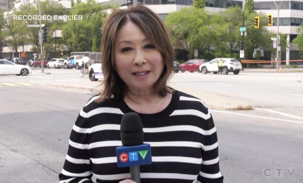 CTV Montreal anchor Mutsumi Takahashi hosted an abbreviated pre-taped newscast on Friday evening from outside the building, telling viewers it had been “an extraordinary day” in the wake of the flooding.